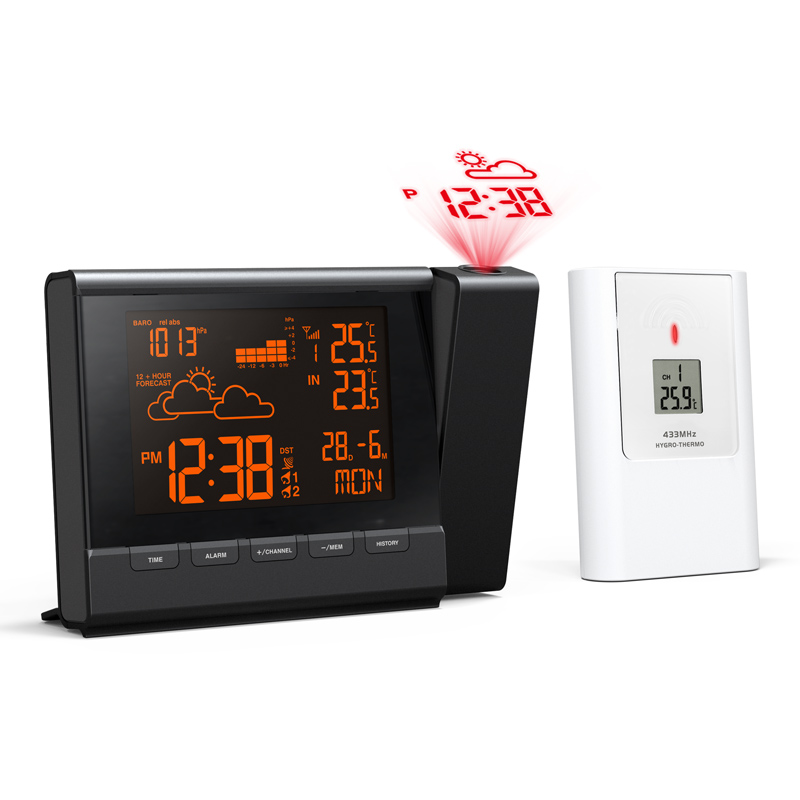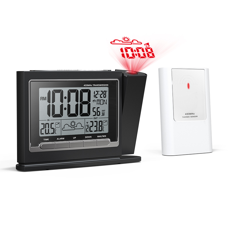 The projection feature allows you to display time and weather on a wall or ceiling for easy viewing during the night.